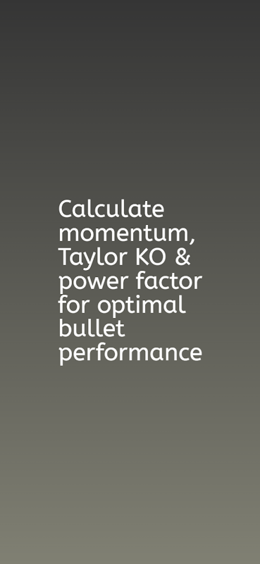 Khai thác toàn bộ tiềm năng về độ chính xác khi bắn của bạn với ứng dụng Bullet Ballistics. Công cụ mạnh mẽ này cho phép bạn tính toán các số liệu cần thiết như năng lượng của viên đạn, động lượng, Taylor KO và hệ số công suất để giúp bạn hiểu được hiệu suất của viên đạn trong nhiều điều kiện khác nhau. Cho dù bạn là thợ săn, game bắn súng thể thao hay người đam mê súng ống, ứng dụng này đều cung cấp thông tin chi tiết quan trọng cho mỗi lần bắn.