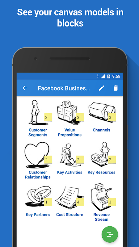 Ứng dụng này nhằm mục đích giúp đỡ tất cả các doanh nghiệp và các Startups để tổ chức và xây dựng mô hình kinh doanh của mình bằng cách sử dụng Canvas nổi tiếng.