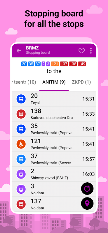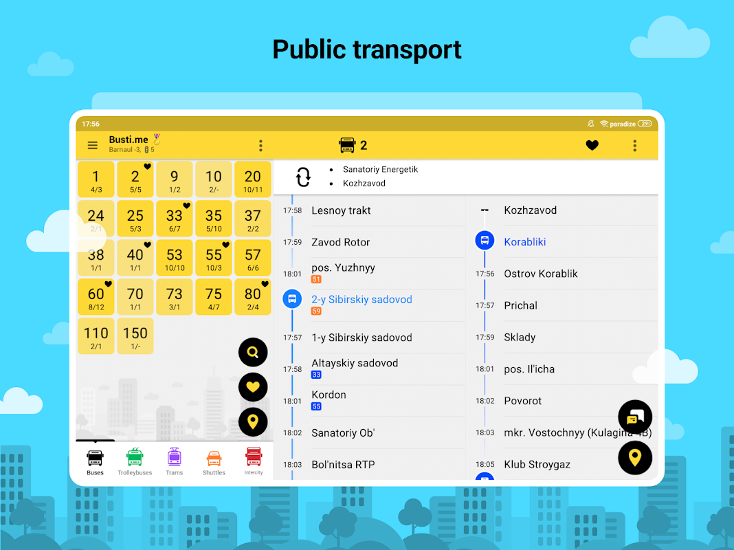 Đây là ứng dụng chính thức của trang web Busti.me. Nó theo dõi phương tiện giao thông công cộng bằng thiết bị GPS/GLONASS trên xe.
