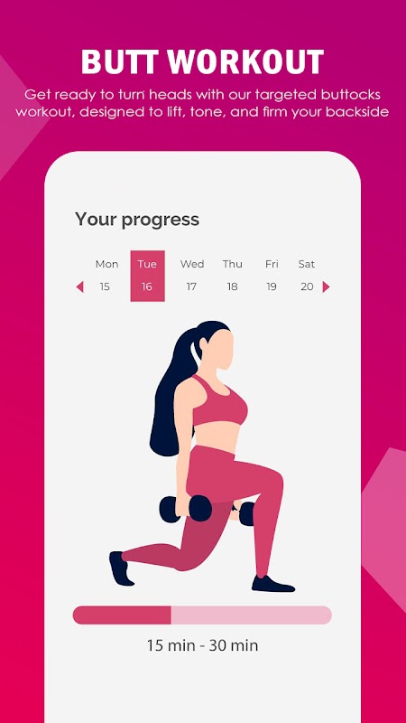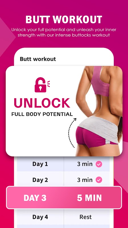 If you want to strengthen and shape your butt, Buttocks Workout is a great option. It includes exercises like squats, lunges, and leg lifts that target the glutes. Users can choose from beginner to advanced workouts and track their progress to see how they're improving.