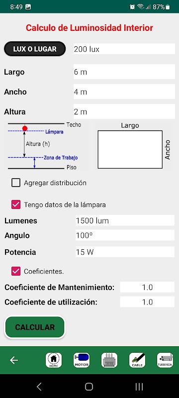Các tùy chọn còn lại để sử dụng hệ số sử dụng và bảo trì, cũng như chọn phân phối đèn hoặc nếu bạn đã chọn đèn, bạn có thể nhập các đặc điểm của nó và thực hiện phép tính.