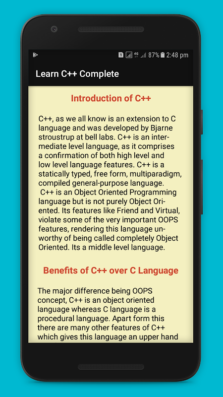 and enjoy this application advanced C++ tutorial free and I request you if you like c++ tutorial and c++ programming tutorials application then give us full Rating with the positive review...