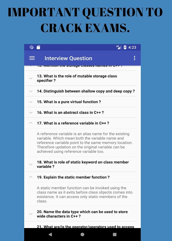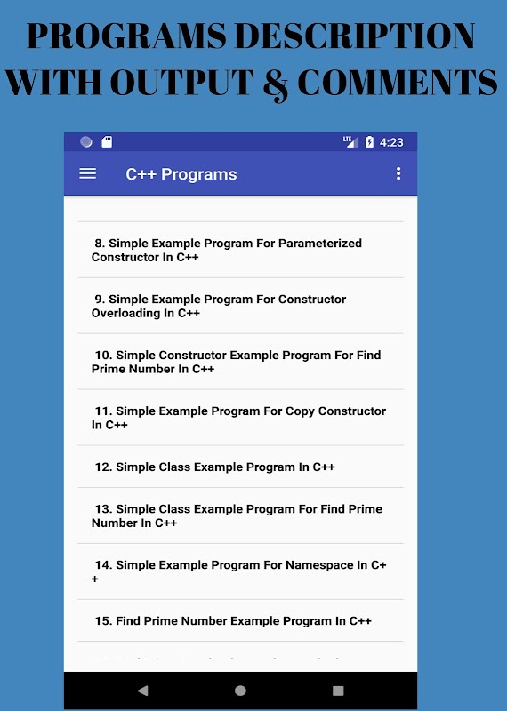 Ứng dụng này giúp bạn tham khảo một bộ sưu tập lớn C ++ chương trình và lý thuyết trên đường đi và Giúp bạn cải thiện tư duy logic của vấn đề khác nhau liên quan đến lập trình.