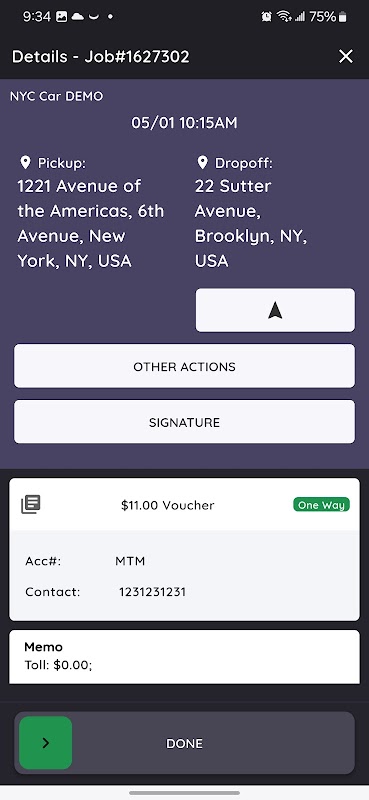 Ứng dụng trình điều khiển này sẽ giúp liên lạc giữa các trình điều khiển, cơ sở công ty và khách hàng một cách hiệu quả. Bất cứ khi nào bạn sẵn sàng làm việc, chỉ cần bắt đầu làm nhiệm vụ, việc đặt chỗ từ công ty đã đăng ký của bạn sẽ tự động được đẩy đến thiết bị của bạn. Bao gồm các thông tin như số điện thoại, địa điểm nhận hàng và điểm đến, v.v. Không còn các cuộc gọi điện thoại hoặc gửi tin nhắn qua radio.