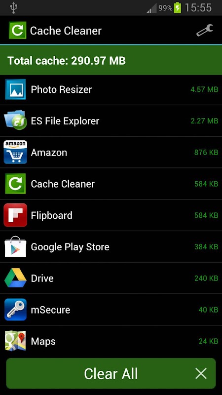 Cache Cleaner giúp bạn xóa các tập tin lưu trữ ứng dụng. Ứng dụng này có thể giải phóng không gian hơn, giúp bất cứ ai có vấn đề về quản lý bộ nhớ và được lưu trữ sẵn nhiều trở lại.
