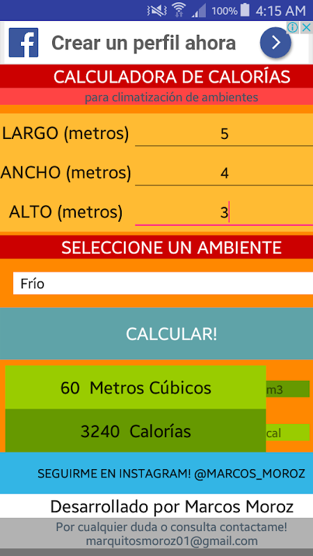 Con esta aplicación podes calcular las calorías de un ambiente para saber que equipo de calefacción tenes que comprar para tu ambiente! Es facil de usar y gratuita.