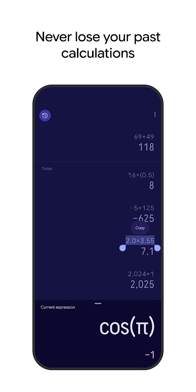 Máy tính cung cấp các hàm toán học cơ bản và nâng cao trong một ứng dụng được thiết kế đẹp mắt.