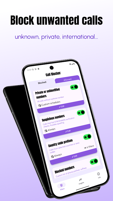 Điện thoại của bạn, quy tắc của bạn — chặn các cuộc gọi không mong muốn vĩnh viễn. Bắt đầu chặn, thư giãn — hãy tải Call Blocker ngay hôm nay.