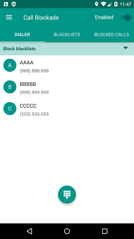 Simple phone dialer with call blocking functionality to block unwanted calls.