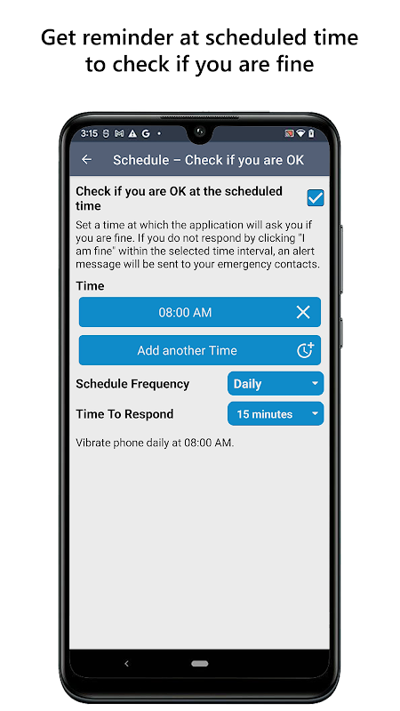 • Lên lịch kiểm tra an toàn của riêng bạn: Giả sử bạn đang có một buổi hẹn hò kín đáo hoặc với một nhóm bạn mới. Điều quan trọng là phải thực hiện các biện pháp phòng ngừa và lên lịch kiểm tra an toàn. Ứng dụng sẽ hỏi bạn vào một thời điểm đã định xem bạn có khỏe không. Nếu bạn không trả lời bằng cách nhấp vào “Tôi ổn”, một thông báo cảnh báo sẽ được gửi đến những người liên hệ khẩn cấp của bạn.