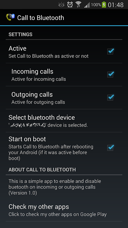 ứng dụng đơn giản này sẽ giúp bluetooth trên điện thoại của bạn khi bạn nhận hoặc thực hiện cuộc gọi, do đó bạn có thể trả lời nó trên tai nghe bluetooth của bạn hoặc bluetooth thiết bị rảnh tay.
