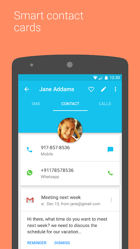 Một sự thật tất cả-trong-một trong những địa chỉ liên lạc, quay số, sms và nhật ký cuộc gọi ứng dụng giúp bạn ngăn chặn những người không mong muốn thông qua người gọi ID & khối. Cho dù đó là một cuộc gọi hoặc sms - bạn luôn kiểm soát những người mà bạn kết nối với.