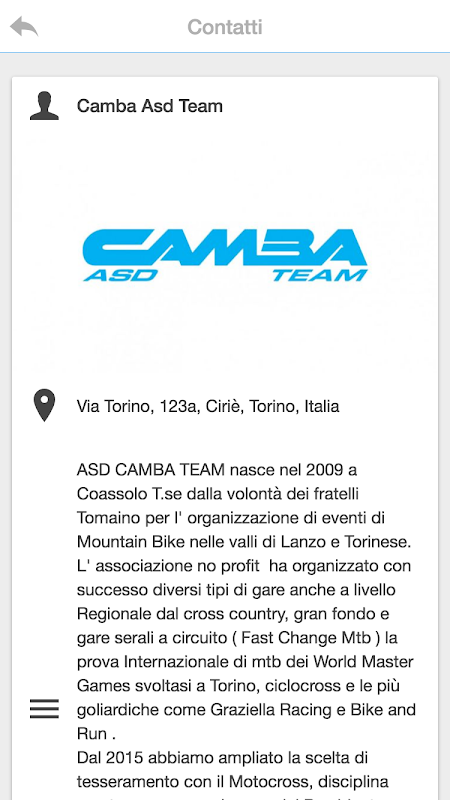 Associazione sportiva, ritrovi per uscite di gruppo, iscrizione a gare organizzate e tesseramento.