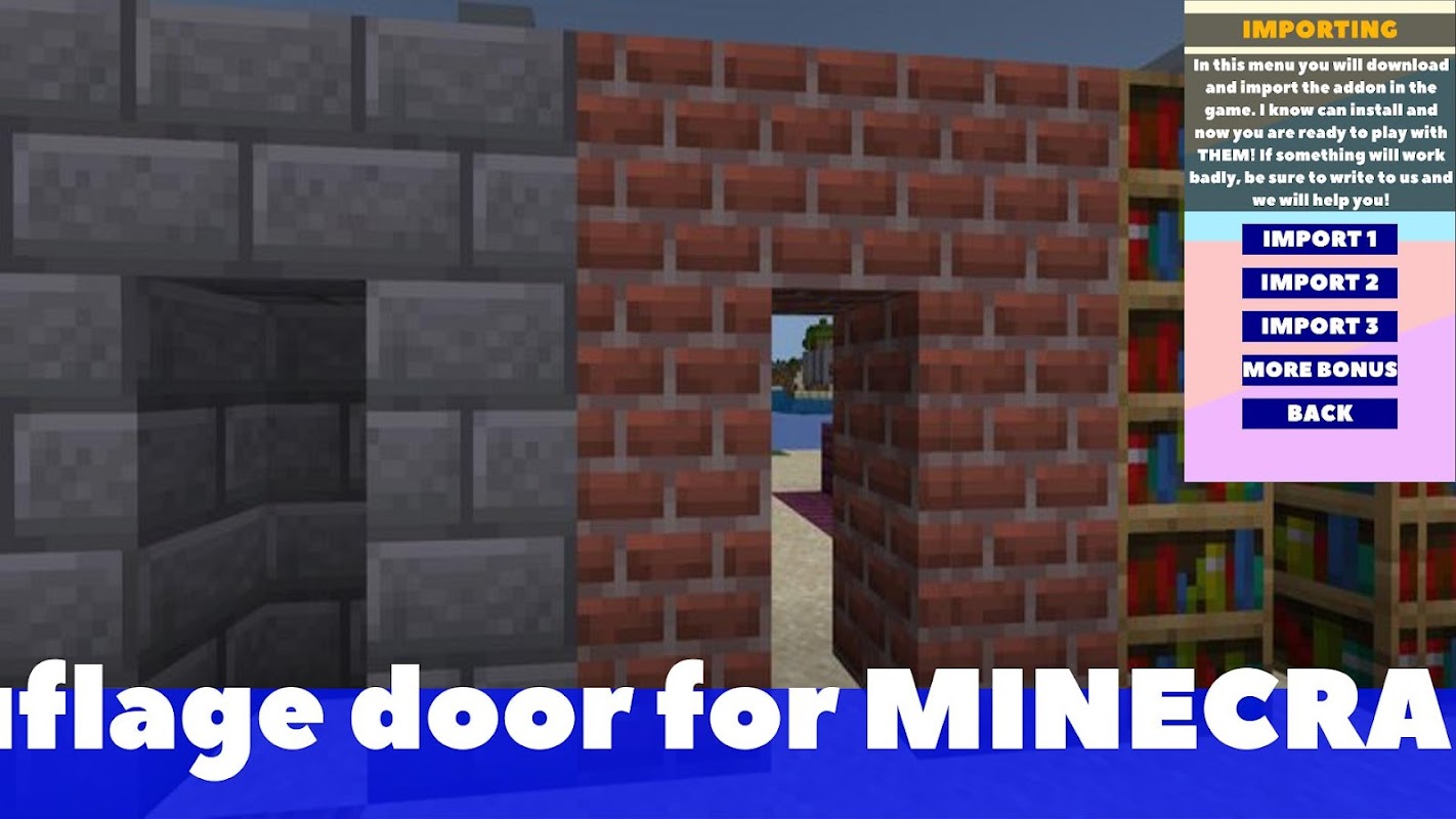 ❗ Camuflage Door Mod for Minecraft PE ❗ 😋 will add addon which contains variety of hidden doors to keep your valuables. It's better than lock doors because they can be hacked and camouflage doors are very hard to find. play witm them in the same world!😀