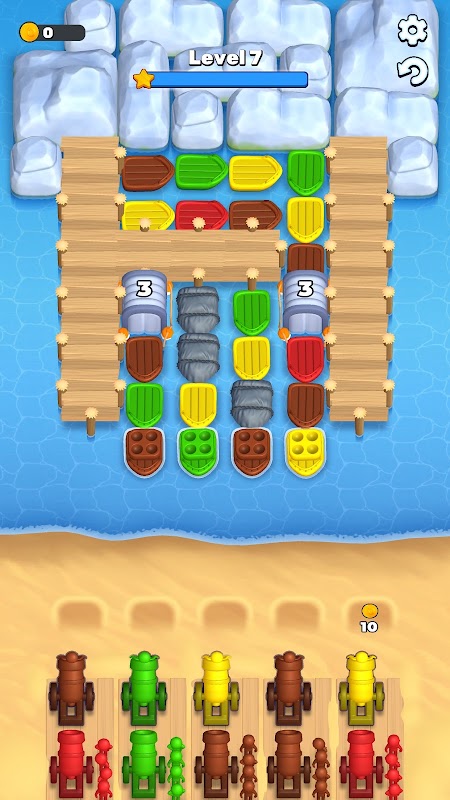 Cannon Sort là một trò chơi ly kỳ, nhịp độ nhanh, trong đó bạn điều khiển những khẩu pháo đầy màu sắc để phóng mọi người vào những con tàu phù hợp! Nhiệm vụ của bạn rất đơn giản: ghép màu sắc của những người trong khẩu pháo với các con tàu, lấp đầy sức chứa của mỗi con tàu. Khi một con tàu đã chất đầy hàng hóa, nó sẽ ra khơi, nhường chỗ cho chiếc tiếp theo. Nhưng đừng vội thư giãn—làn sóng người tiếp theo đang đến! Với hình ảnh sống động, lối chơi năng động và thử thách ngày càng tăng, Cannon Sort sẽ khiến bạn gắn bó khi quản lý sự hỗn loạn và giữ cho các con tàu di chuyển.