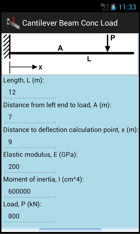 Free app for analyzing a cantilever beam with a concentrated load. Of interest to civil, structural, and mechanical engineers.