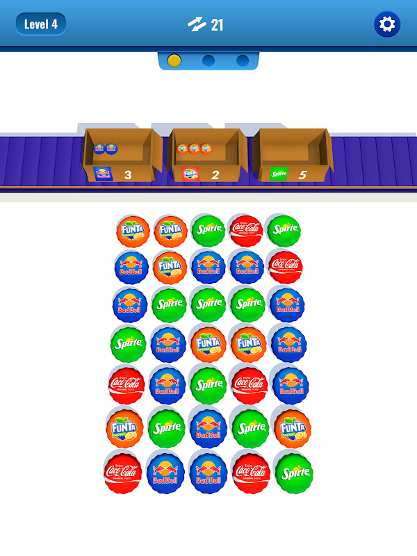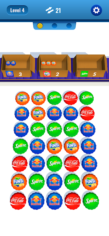 Ghép các nắp cùng loại để sắp xếp chúng! Tạo các chuỗi dài nhất và phá vỡ chúng để đạt được mục tiêu cấp độ!