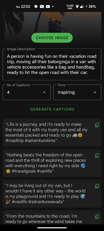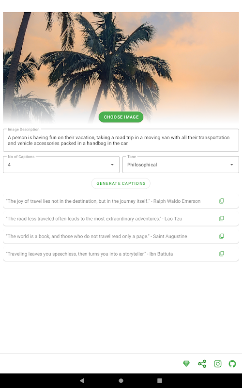 Ứng dụng này kết hợp sức mạnh của AWS Rekognition và GPT-3.5 Turbo để nâng cấp trò chơi chú thích trên Instagram của bạn. Với ứng dụng này, bạn có thể dễ dàng tạo chú thích hấp dẫn cho hình ảnh của mình.