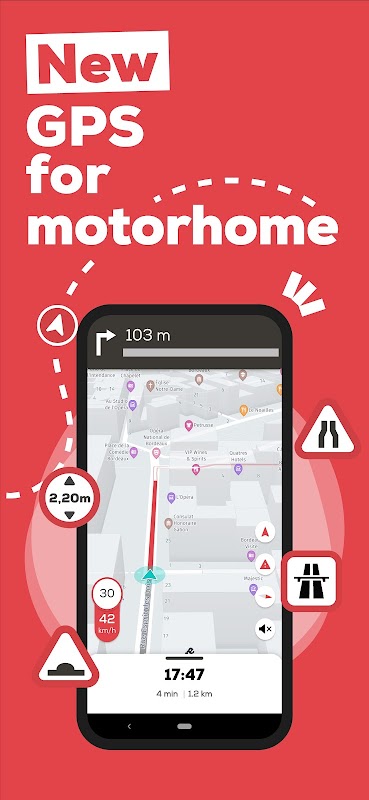 ĐIỀU HÀNH suôn sẻ với xe cắm trại GPS có tính đến kích thước xe của bạn. Tránh những con đường không phù hợp, đường hầm thấp và phí cầu đường không cần thiết! Nhập địa chỉ, tọa độ GPS hoặc chọn vị trí trực tiếp trên bản đồ!