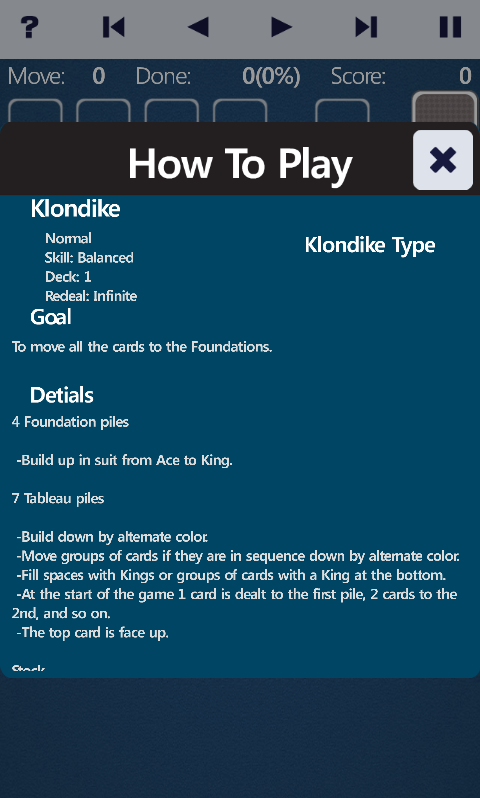 Trò chơi Solitaire của chúng tôi sử dụng công thức chơi trò chơi đáng tin cậy. Với đồ họa và hoạt ảnh tuyệt đẹp, phiên bản trò chơi bài phổ biến này là một trong những trò chơi bài Patience đẹp nhất mà bạn có thể tìm thấy. Bộ bài được thiết kế tùy chỉnh tuyệt đẹp với độ phân giải cao, chơi Patience trên máy tính bảng Android HD của bạn chưa bao giờ đẹp đến thế!