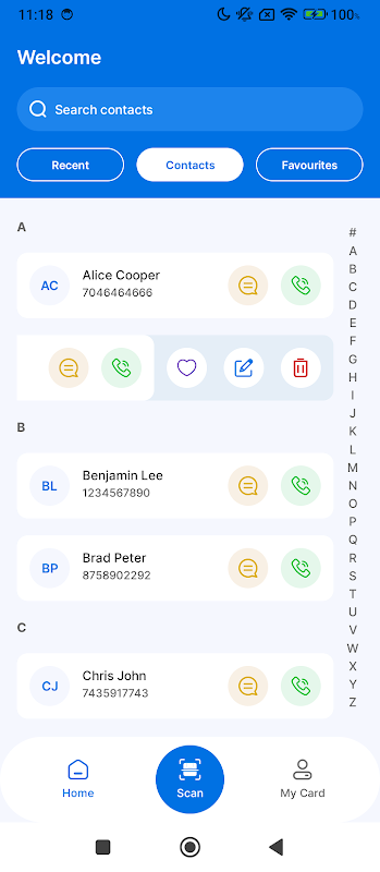 Sử dụng camera trên điện thoại để quét danh thiếp vật lý. Công nghệ OCR tiên tiến nhanh chóng chụp thông tin liên lạc và lưu trữ chúng an toàn trong thư viện kỹ thuật số của bạn. Không còn mất các liên lạc quan trọng nữa.