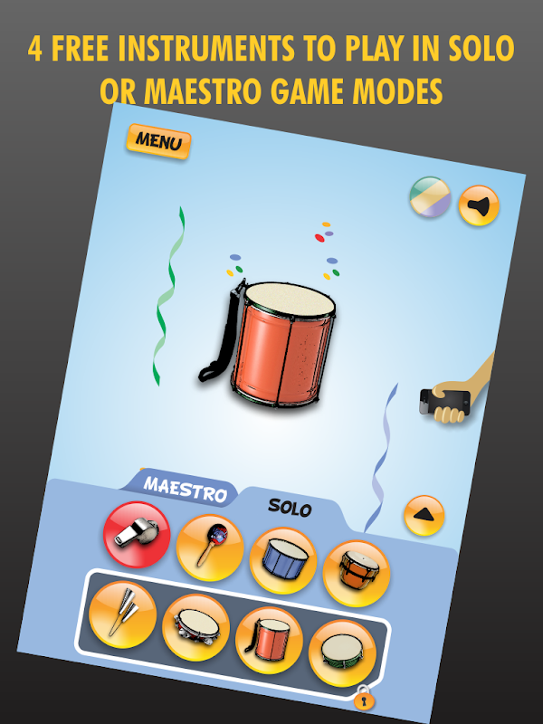 Gather your friends, pick your favorite instrument and feel the groove of the Brazilian Carnival. You can choose from the authentic agogo, apito, ganza, pandeiro, cuica and more!