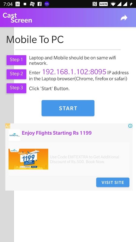 Truyền thiết bị di động tới PC hoặc máy tính MAC - Ngoài việc chia sẻ màn hình điện thoại di động của bạn với TV, bạn cũng có thể phản chiếu thiết bị di động với bất kỳ hệ thống PC hoặc MAC nào. Chán xem video của bạn trên thiết bị di động của bạn? hay cổ và mắt của bạn bị căng ra? Đừng lo lắng, chỉ cần phản chiếu thiết bị di động của bạn trên màn hình PC bằng ứng dụng Truyền tới TV / PC này, giữ thiết bị di động của bạn sang một bên, thư giãn và xem trên màn hình PC / MAC. Tính năng phát sóng độc đáo này làm cho ứng dụng này trở nên đặc biệt so với các ứng dụng khác.