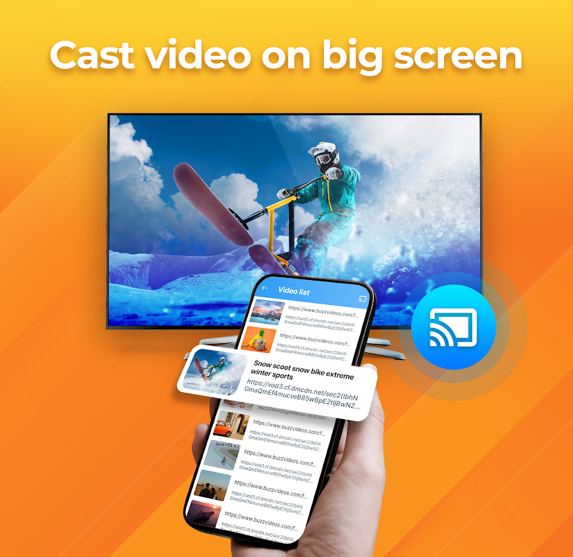 Xem màn hình điện thoại của bạn trên TV bằng cách truyền video trên web sang ứng dụng TV. Đã đến lúc chia sẻ nội dung thú vị với bạn bè và gia đình của bạn trên màn hình lớn hơn. Hơn nữa, việc sử dụng ứng dụng Web Cast để xem video trên màn hình lớn giúp bạn thoải mái hơn và bảo vệ mắt hiệu quả.