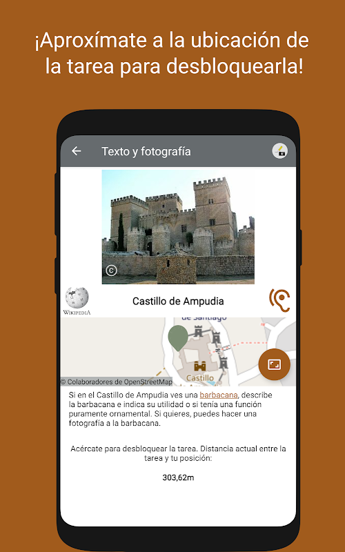 Existen diferentes tipos de tareas: realizar fotografías, vídeos, responder preguntas cortas... ¡La aplicación también te puede proponer visitar un monumento de estilo similar al que estás visitando para que los puedas comparar!