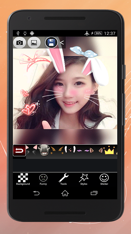 Bạn muốn thay đổi gương mặt? bạn muốn chụp ảnh tự sướng vật với thỏ và chó tai dễ thương? Hãy thử sử dụng dễ dàng và huyền diệu mặt cười - hình ảnh cắt dán máy ảnh selfie! bạn sẽ có rất nhiều niềm vui với hơn 30 mặt nạ built-in chọn.