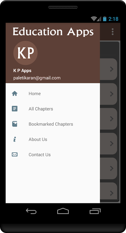 One can navigate to all chapters by clicking on the menu button (3 horizontal lines on top of the screen) or swipe from left of the screen to see the navigation drawer and select appropriate options. There is also an option to bookmark chapters for easy access when you navigate through chapters list and see the content of the specific chapter.
