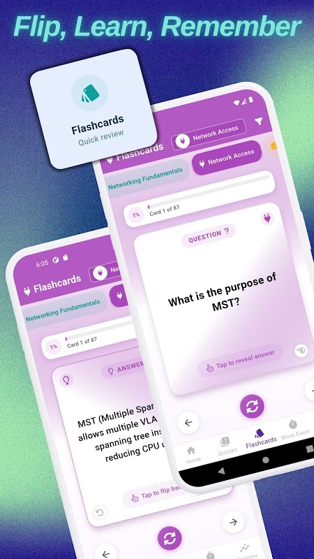 📚 Thẻ ghi nhớ – Ghi nhớ các lệnh mạng, giao thức và các khái niệm chính một cách hiệu quả với các bộ thẻ ghi nhớ động.