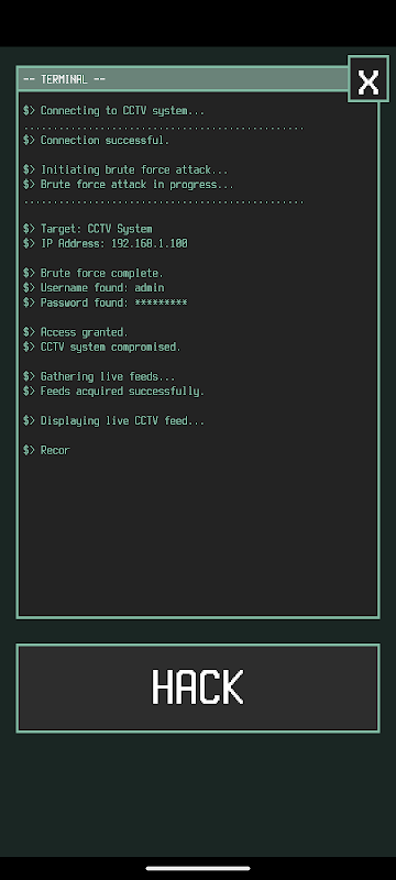 Đắm chìm trong thế giới ly kỳ khi truy cập camera an ninh với đồ họa tuyệt đẹp và hiệu ứng âm thanh chân thực. Với công nghệ mô phỏng tiên tiến của chúng tôi, bạn có thể tạo ra trải nghiệm thuyết phục và hấp dẫn ngay trên thiết bị di động của mình.