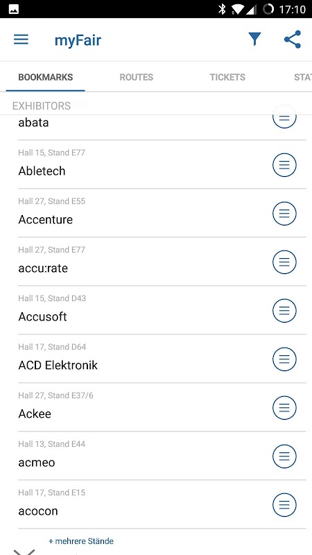 After your log in on the CEBIT website, the data for your checklist and your personal route will be synchronized into the app automatically.