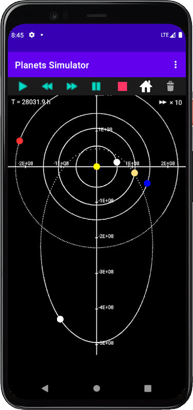 This app simulates planetary motion on the basis of Newton mechanics. Let's place planets as you like, and observe movement !