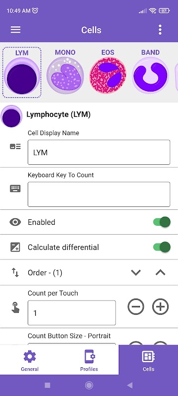 Ứng dụng này là một máy đếm tế bào máu và máy tính vi sai cho công việc trong phòng thí nghiệm.