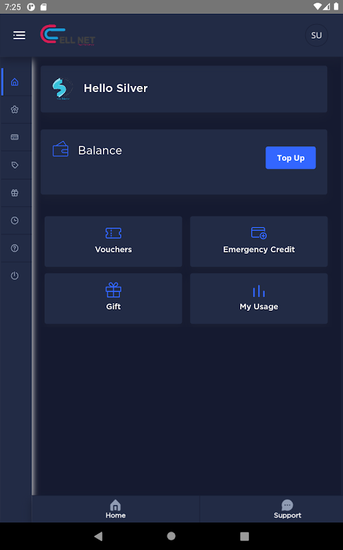 Ứng dụng di động Cellnet để nạp tiền, mua gói và hỗ trợ kỹ thuật.