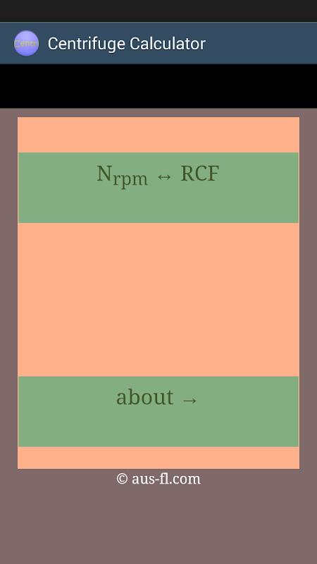 This app calculates the Relative Centrifugal Force (RCF) for given Rotational Radius (r [mm]) and Rotational Speed (N [rpm]).