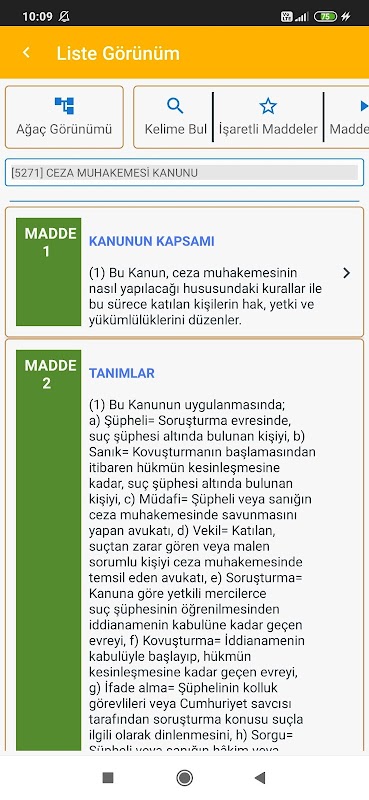 Các điều khoản của Bộ luật tố tụng hình sự được đưa vào ứng dụng dưới dạng Danh sách và Xem chi tiết.