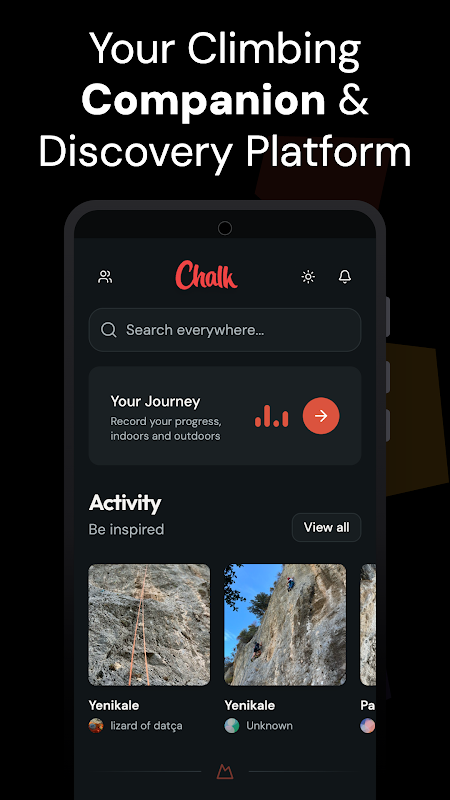 Chalk là ứng dụng leo núi được xây dựng dành cho những người leo núi quan tâm đến sự tiến bộ. Cho dù bạn đang chinh phục đường leo V5 đầu tiên, chinh phục các đường leo thể thao khắp châu Âu, hay theo dõi các buổi tập tại phòng tập địa phương - Chalk cung cấp cho bạn các công cụ để leo núi tốt hơn và khám phá xa hơn.