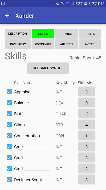 Ứng dụng này sẽ xử lý một phần lớn toán học cho bạn! Có nghĩa là bạn không cần phải tính toán công cụ sửa đổi khả năng, công cụ sửa đổi kỹ năng, lớp Giáp của bạn và hơn thế nữa.