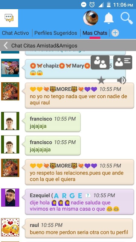 La comunidad de Chat virtual está organizada por específicos temas de salas de chat. Lo que sea que te guste, tenemos una sala de chat para ti. Después de que encuentres una sala que te guste, puedes empezar a chatear con personas que te agraden. Todos los mensajes que envíes al chat serán leídos por el grupo completo conectado a la sala. Para conversaciones más personales, envía un mensaje privado!