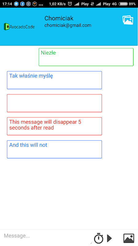 - Disappearing messages, that are DELETED and disappears after 5 seconds from open!