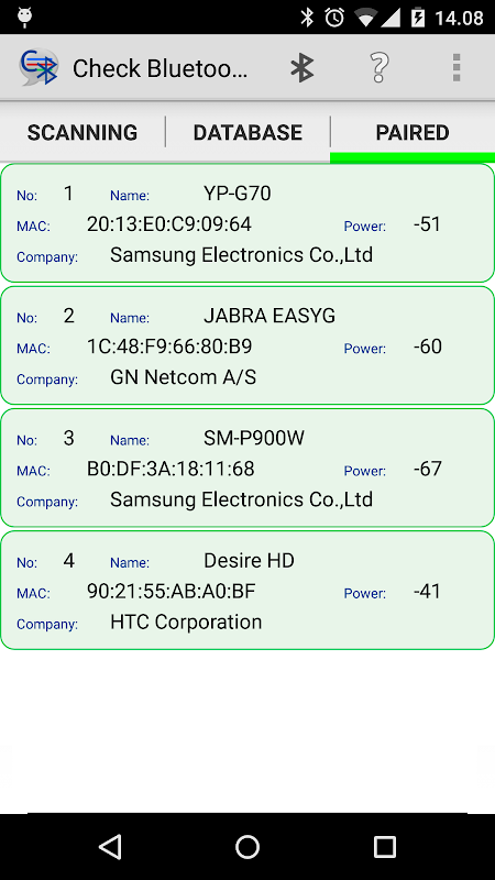 Kiểm tra Bluetooth sẽ kiểm tra và lưu giữ thông tin về các thiết bị Bluetooth của bạn. Bạn nhận được thông tin về các thiết bị Bluetooth mà điện thoại thông minh của bạn có thể nhận được liên lạc với.