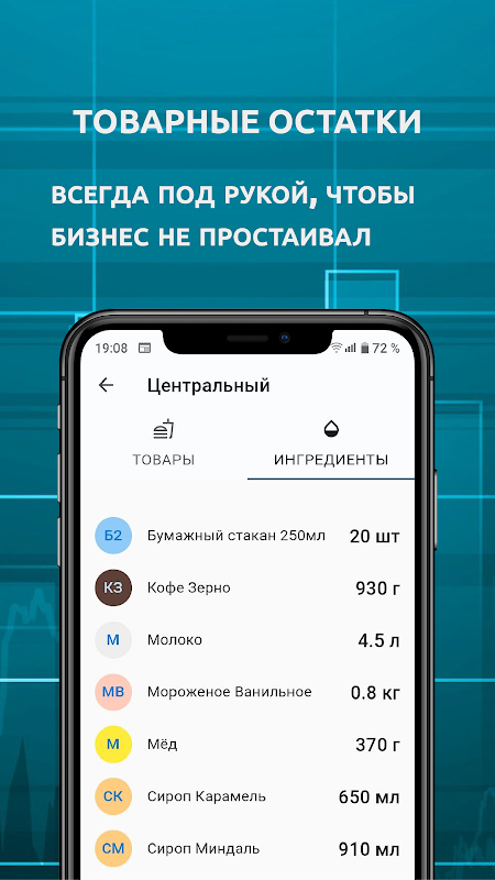 CheckApp cho phép bạn kiểm soát số dư của không chỉ hàng hóa được bán mà còn cả các thành phần cần thiết để chuẩn bị chúng. Trong ngành dịch vụ, đây có thể là nguyên liệu cần thiết để hoàn thành công việc. Kiểm soát số dư theo thời gian thực sẽ cho phép bạn mua hàng đúng hạn.