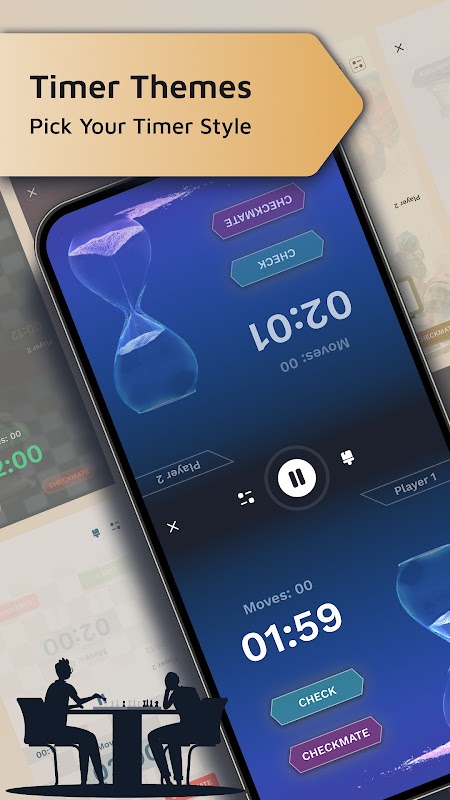 • Chọn từ các chủ đề đồng hồ cờ vua tuyệt đẹp và giao diện đồng hồ đếm giờ.
