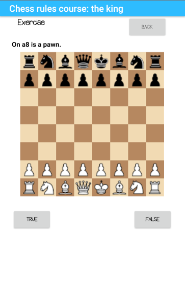 The course aims to be a user-friendly, safe, commercial-free and motivating way to learn chess, step by step. Every course part exists of an explanation, followed by exercises. There is no exam, or track of score; it's perfectly ok to make as many errors as needed. Because of random selection of exercises, repetition may occur. Please be patient. Repitition is the mother of skill.