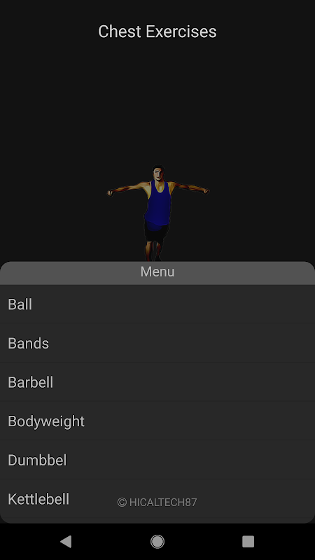 Trong ứng dụng này có 103 hình thức đào tạo để huấn luyện cơ ngực được chia thành 8 loại.