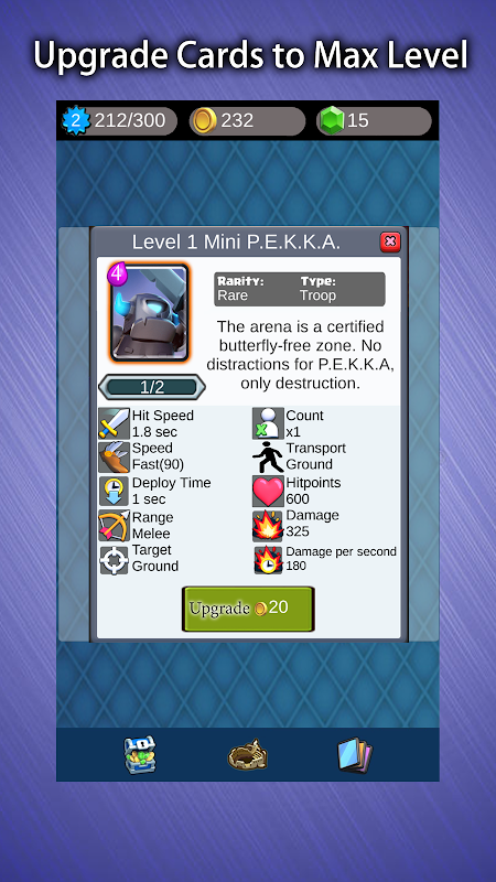 Step into one of 12 arenas and become a champion with your cards. Upgrade your league after unlocking arenas.