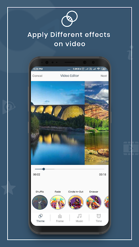 Hiệu ứng đẹp mắt: Chúng tôi có các hiệu ứng miễn phí hấp dẫn và chỉ cần một cú nhấp chuột để tạo video âm nhạc hoặc trình chiếu lý tưởng, phim ngay lập tức. Nhà sản xuất video CI làm cho nó hấp dẫn hơn để chia sẻ trên phương tiện truyền thông xã hội bằng các hiệu ứng khác nhau
